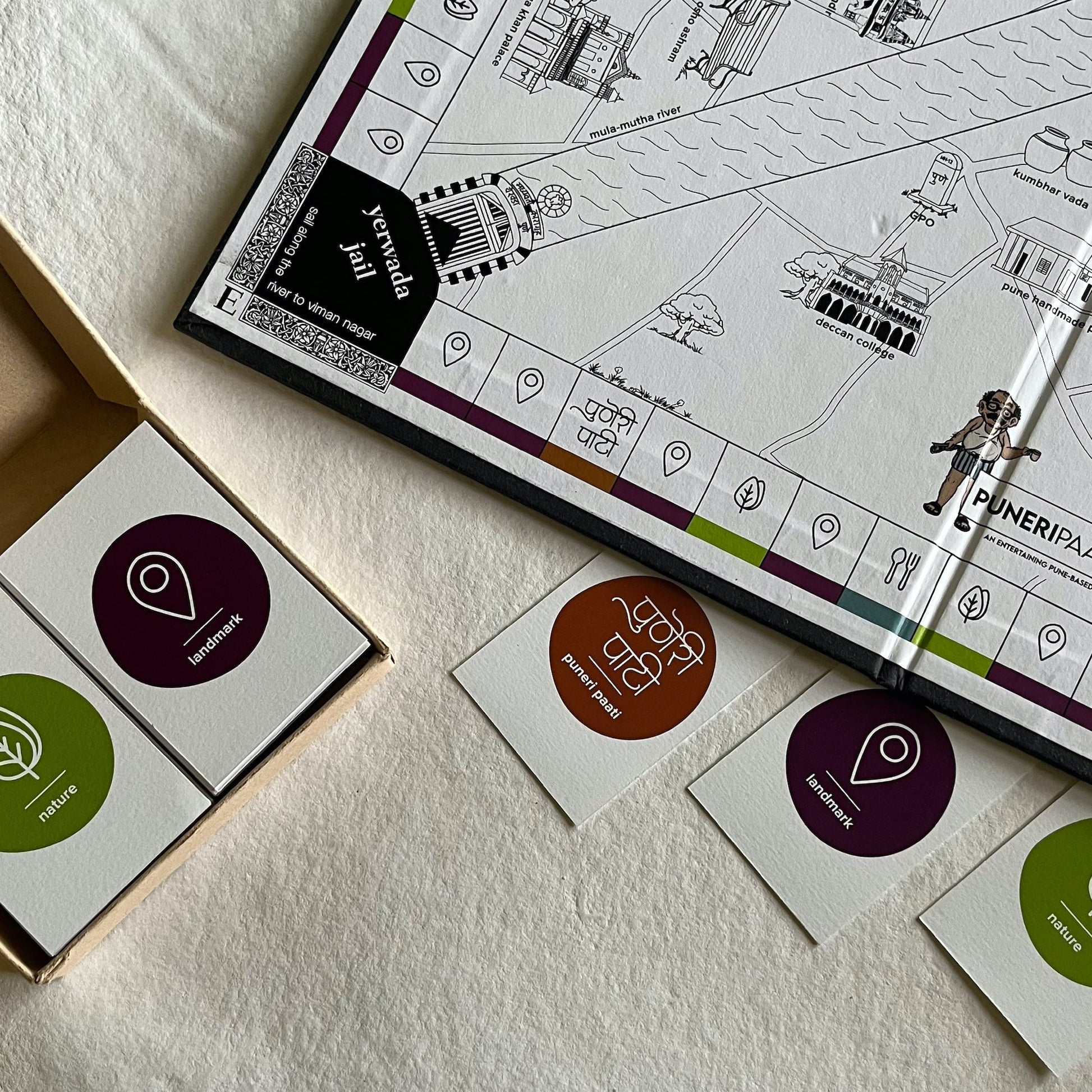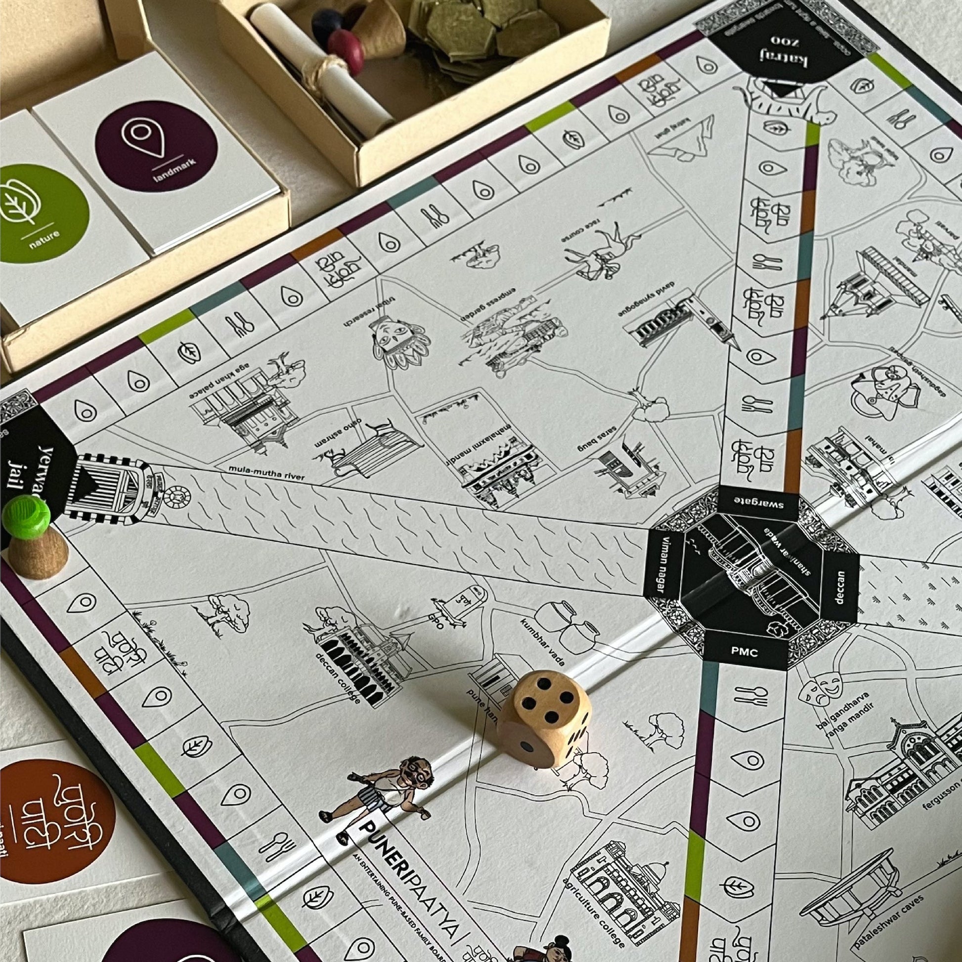 introducing "puneri paatya | पुणेरी पाट्या" - an entertaining pune-based family board game. filled with joy and quirky "puneripana | पुणेरीपणा", we created this game out of pure love and admiration for the city. get your way around the game and you will surely come to know more about the proud punekars and their city!